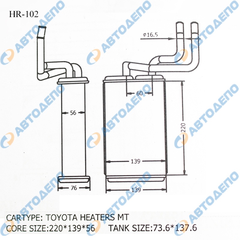 Согласно стандартам , данный радиатор соответствует современным требованиям по экологии и безопасности. Обеспечьте комфорт в вашем автомобиле с радиатором отопителя AD Radiators HR-102!